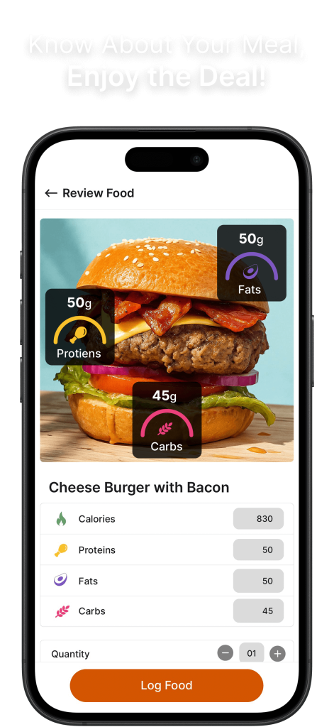 Instantly see protein, fats, carbs, and calories for every meal. Visual, simple, and always at your fingertips.