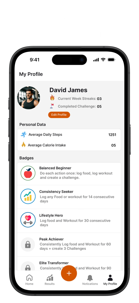 Unlock achievements, build healthy habits, and show off your progress on your personal profile.